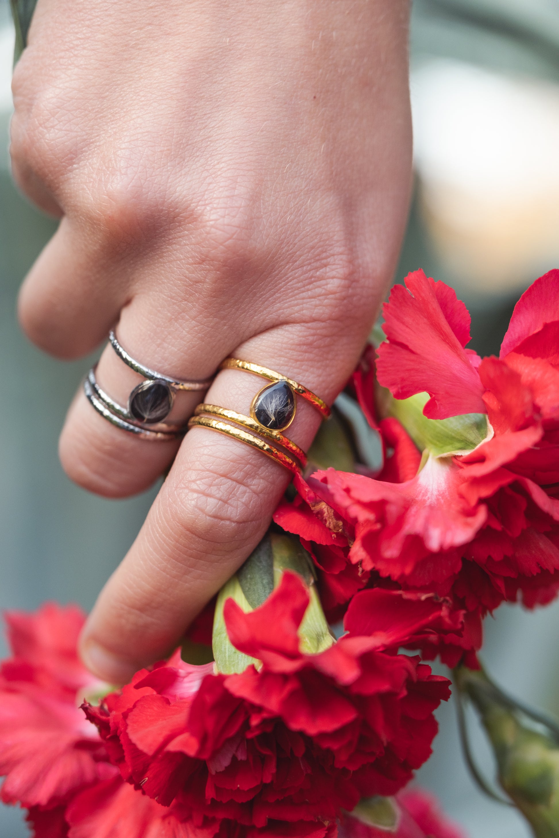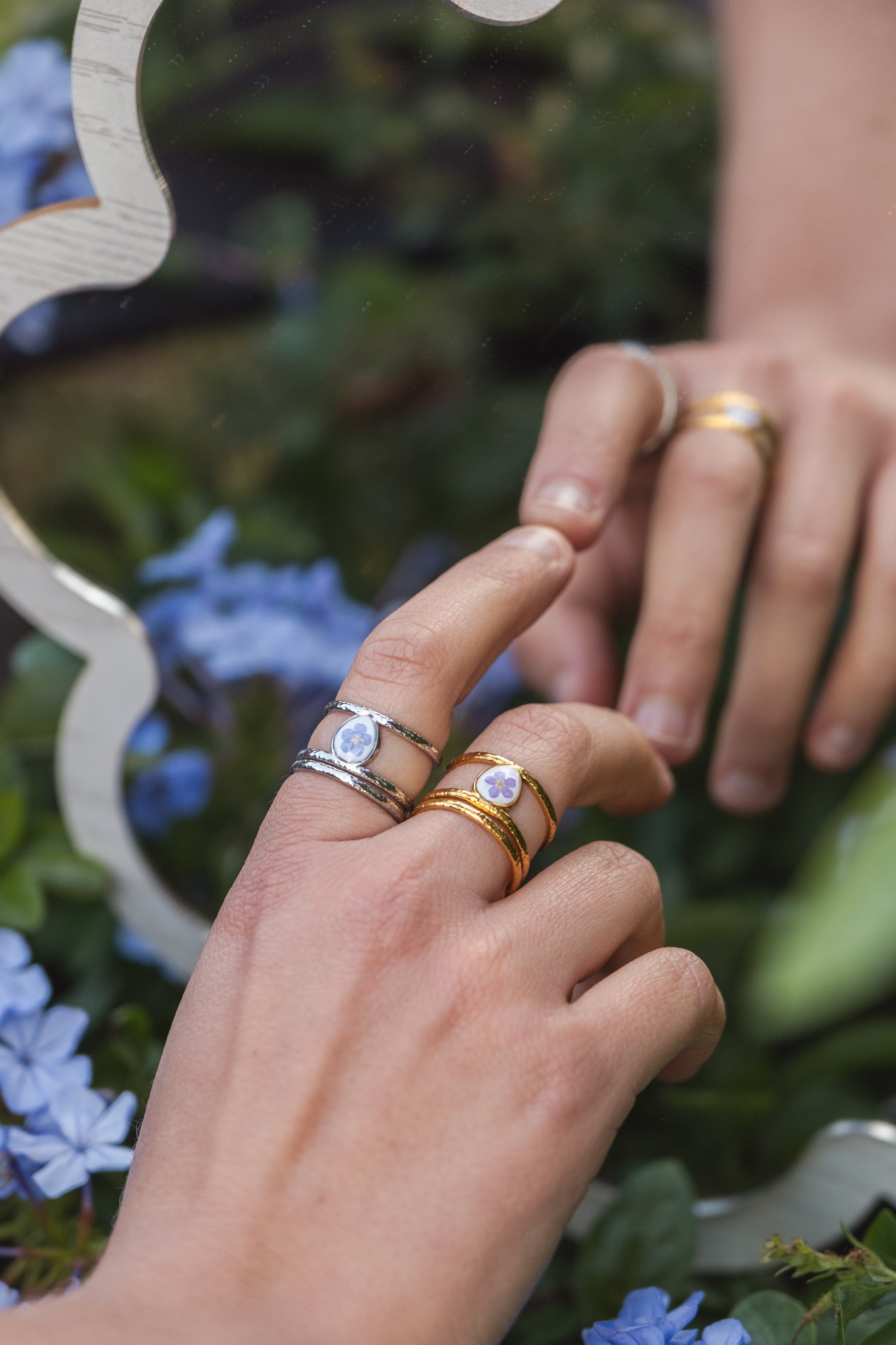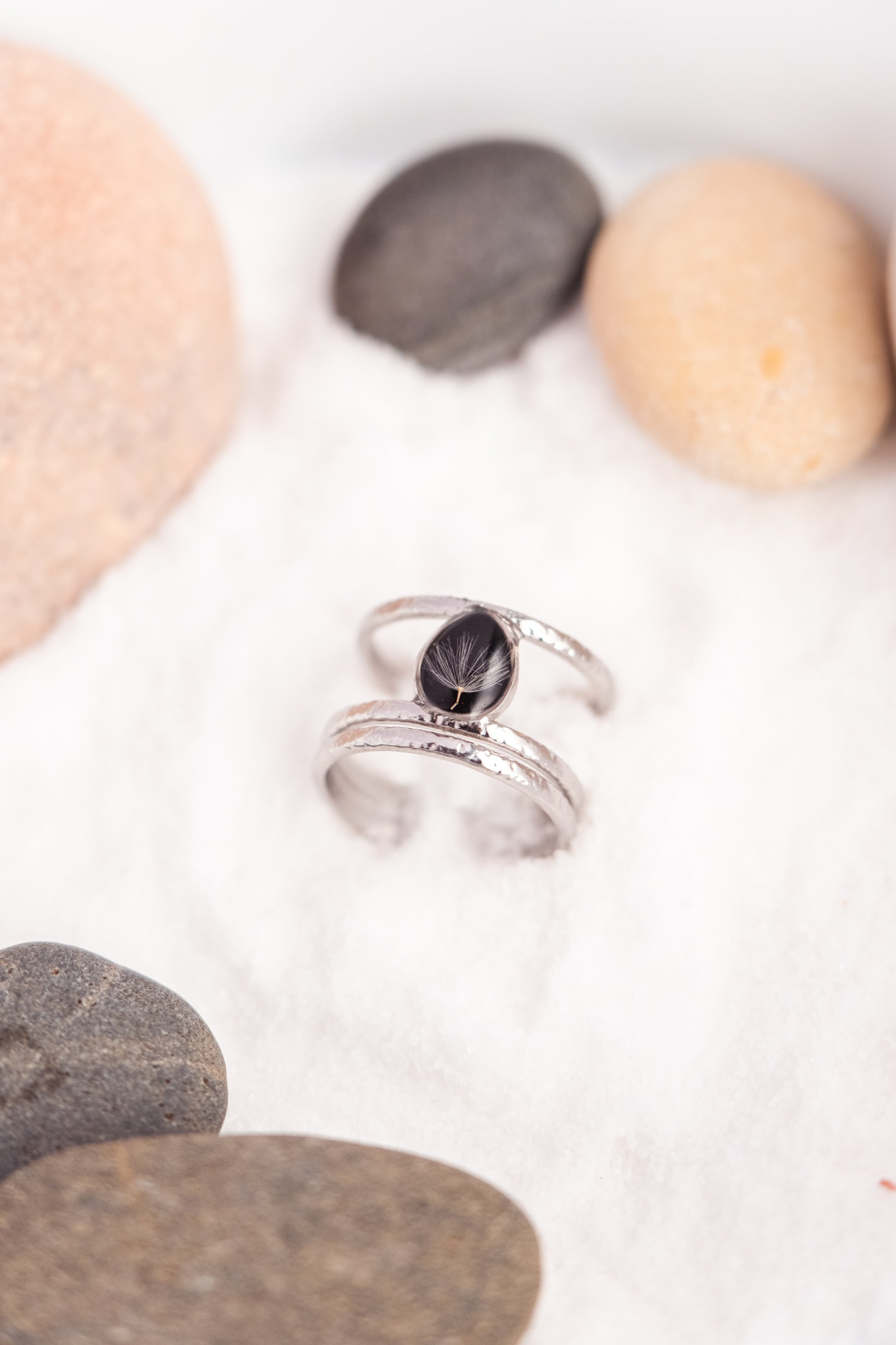 Anello regolabile doppia fascia, con fiori veri.